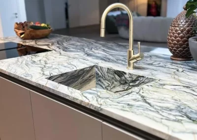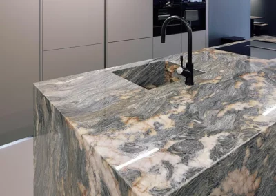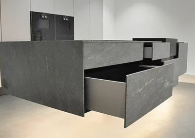Unsere Steinküchen verbinden natürliche Eleganz mit herausragender Funktionalität. Von Quarz über Schiefer bis Marmor – jede Küche wird aus sorgfältig ausgewählten Materialien gefertigt, deren einzigartige Maserung bewusst ins Design integriert wird. Mit durchdachten Details wie nahtlosen Arbeitsflächen, versteckten Backup-Küchen und perfekt abgestimmten Elementen wie Eichenfurnier oder Quarzit Tauerngrün schaffen wir Küchen, die Individualität und Stil ausstrahlen. Ob rustikal oder modern, jede unserer Natursteinküchen ist ein Unikat, das Ihr Zuhause bereichert und kulinarische Momente zu einem Erlebnis macht.