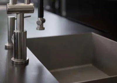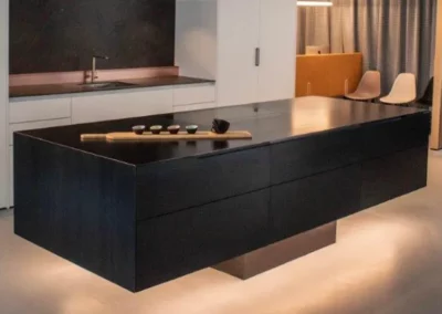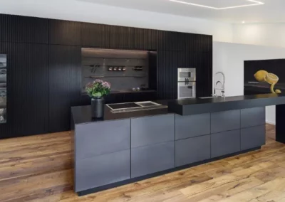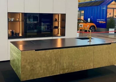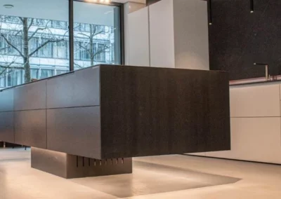 Mit unseren Edelmetallküchen erleben Sie eine perfekte puristische Ästhetik und meisterhafte Handwerkskunst. Edle Metalloberflächen, markante Strukturen und individuell angefertigte Details wie die 3-mm oder auch 19mm Schwarzstahlfront der Kücheninsel oder die einzigartige, hot-rolled Arbeitsplatte prägen das Design. Diese Kombination aus robusten Materialien und klarer Formensprache steht nicht nur für zeitlose Schönheit, sondern auch für unvergleichliche Präzision und Langlebigkeit. Das Resultat ist ein Küchenkonzept, das Ihre höchsten Ansprüche übertrifft und sich als wahres Herzstück Ihres Zuhauses etabliert.